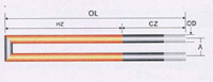 D:冷端直徑 ;d:熱端直徑;HZ:熱端長度; CZ:冷端長度; OL:總長