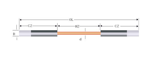D:冷端直徑 ;d:熱端直徑;HZ:熱端長(zhǎng)度; CZ:冷端長(zhǎng)度; OL:總長(zhǎng)